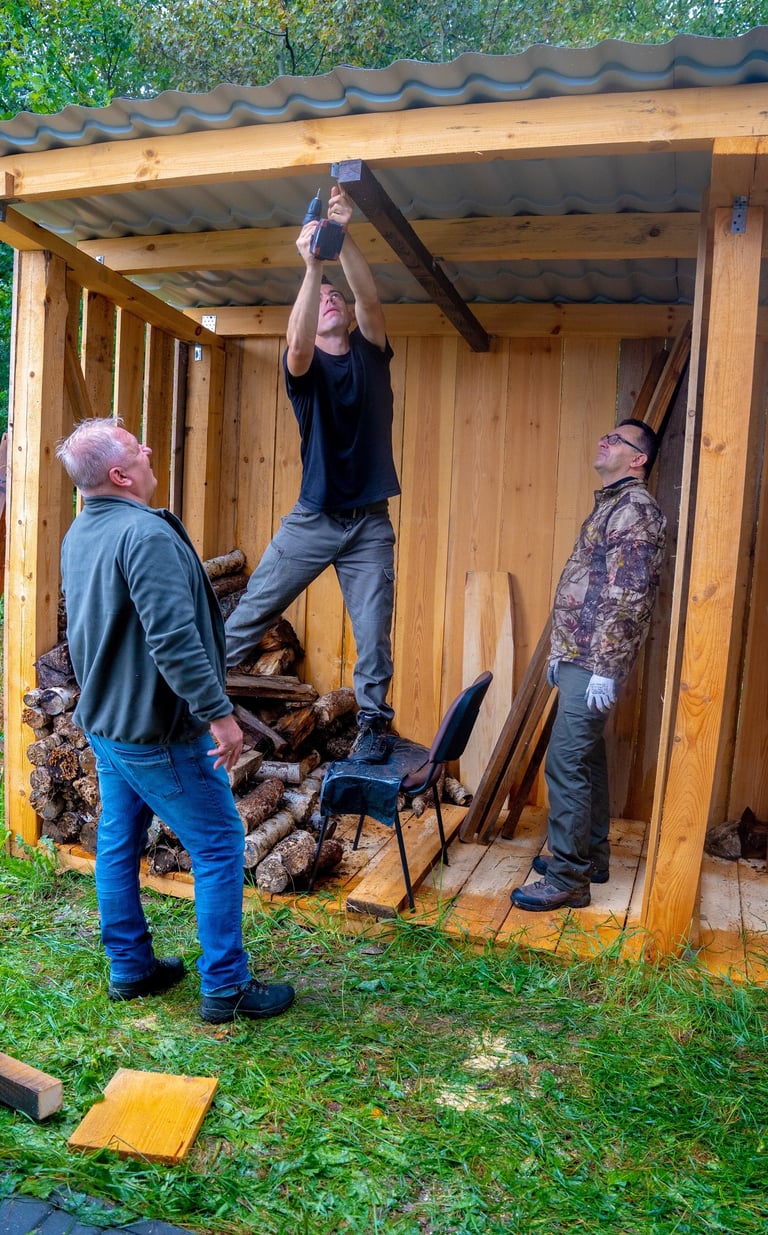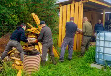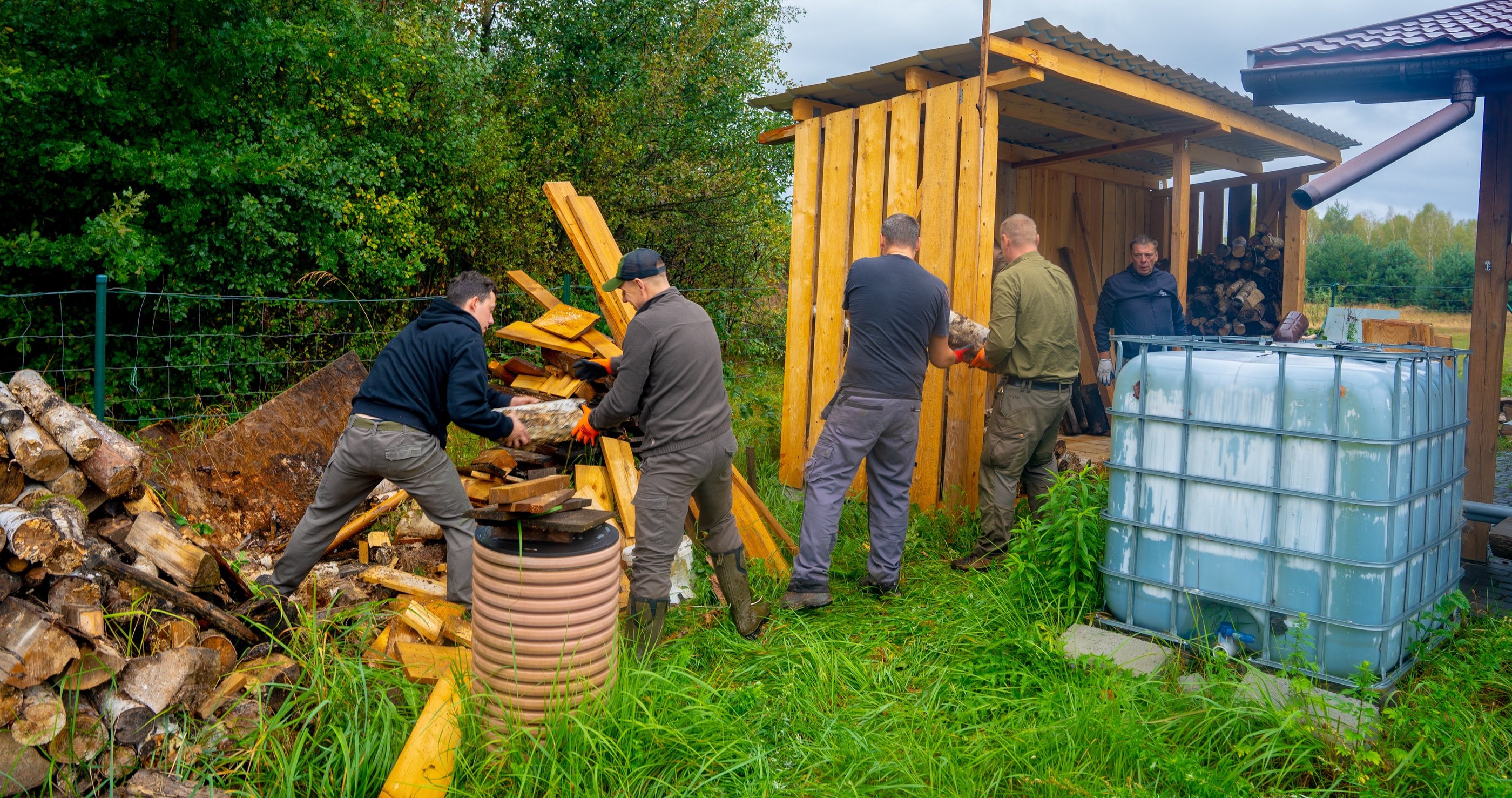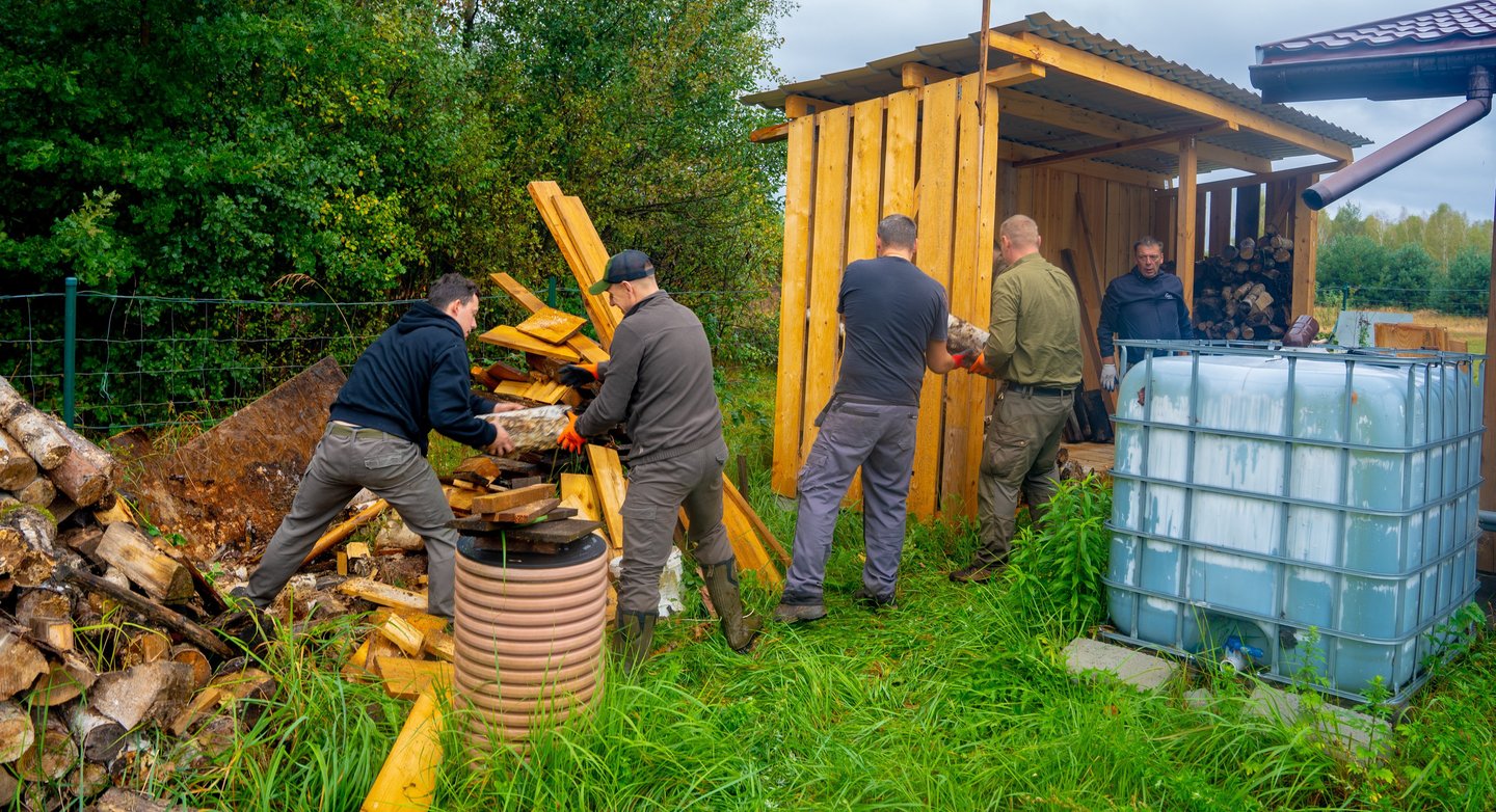 Jednym z głównych zadań było ułożenie drewna w nowo powstałej drewutni, którą wybudowaliśmy podczas poprzedniego Dnia Gospodarczego. Drewno zostało starannie ułożone, co zabezpiecza nas na nadchodzący sezon.