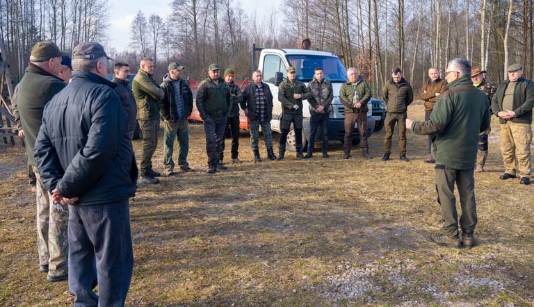 Szanowni Koledzy, W dniu 21.03.2026 r. odbył się dzień gospodarczy naszego Koła Łowieckiego „Gajus”, którego celem było wykonanie niezbędnych prac porządkowych i konserwacyjnych na terenie osady myśliwskiej w Pieradłach oraz w łowisku. Zbiórka rozpoczęła się o godzinie 8:00, po czym przystąpiono do zaplanowanych prac. W ich trakcie wykonano m.in. naprawę ambon, wywożenie zwyżek, uporządkowanie placu, a także szereg innych bieżących działań niezbędnych do prawidłowego funkcjonowania naszej infrastruktury łowieckiej. Dzięki zaangażowaniu i pracy uczestników udało się sprawnie zrealizować założone zadania, co znacząco wpłynęło na poprawę stanu naszych urządzeń i otoczenia osady. Po zakończeniu prac na wszystkich czekał poczęstunek w postaci pieczonego dzika, który był doskonałym zwieńczeniem wspólnie spędzonego dnia i okazją do rozmów w koleżeńskiej atmosferze. Dziękujemy wszystkim Kolegom za obecność, zaangażowanie oraz wkład w rozwój naszego Koła. Darz Bór!