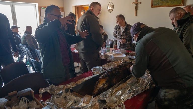 Po zakończeniu prac na wszystkich czekał poczęstunek w postaci pieczonego dzika, który był doskonałym zwieńczeniem wspólnie spędzonego dnia i okazją do rozmów w koleżeńskiej atmosferze.