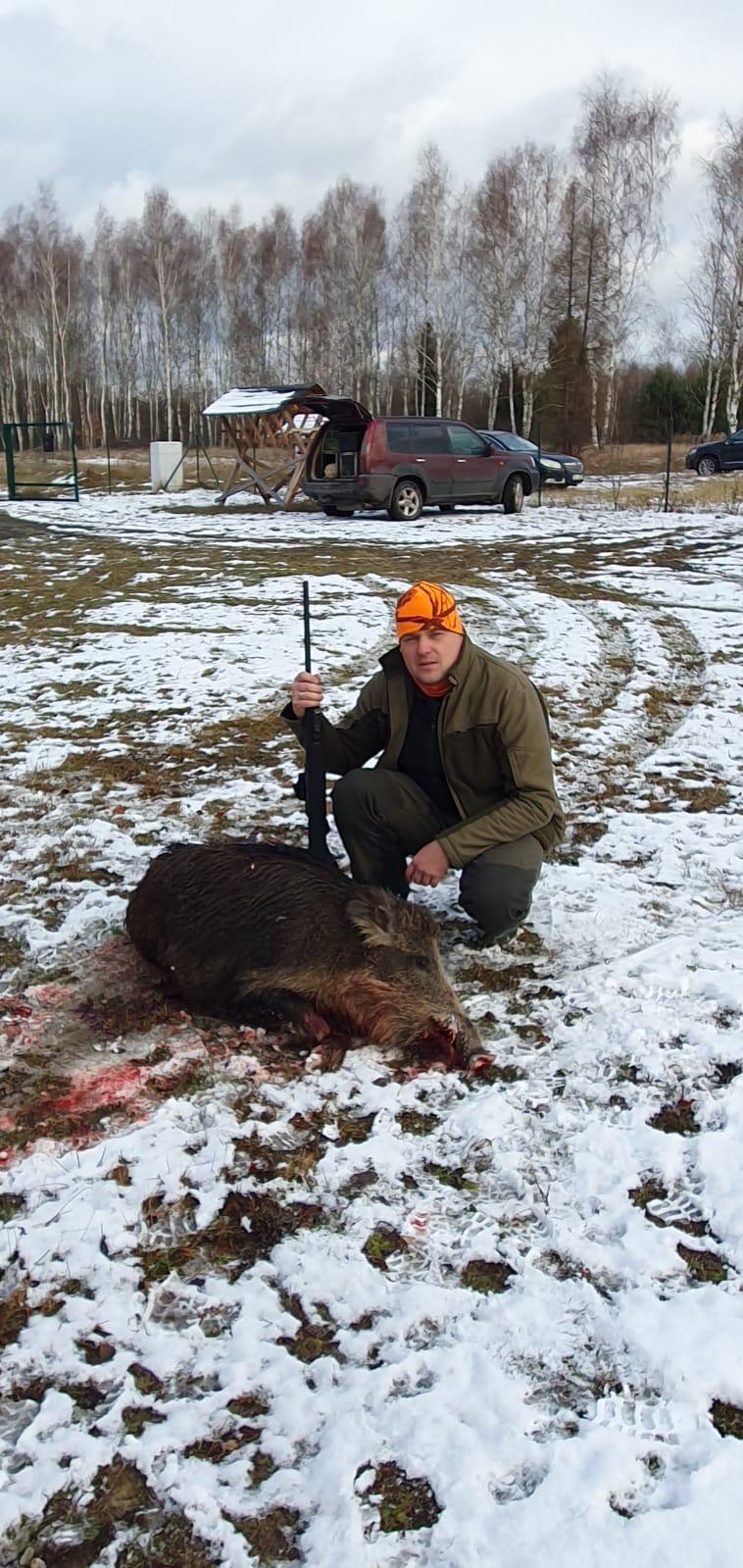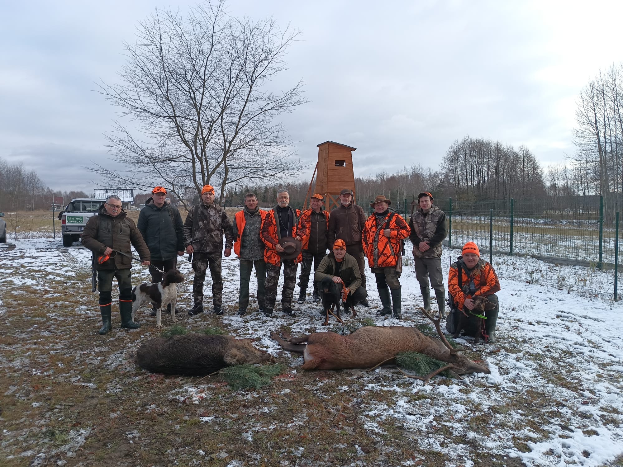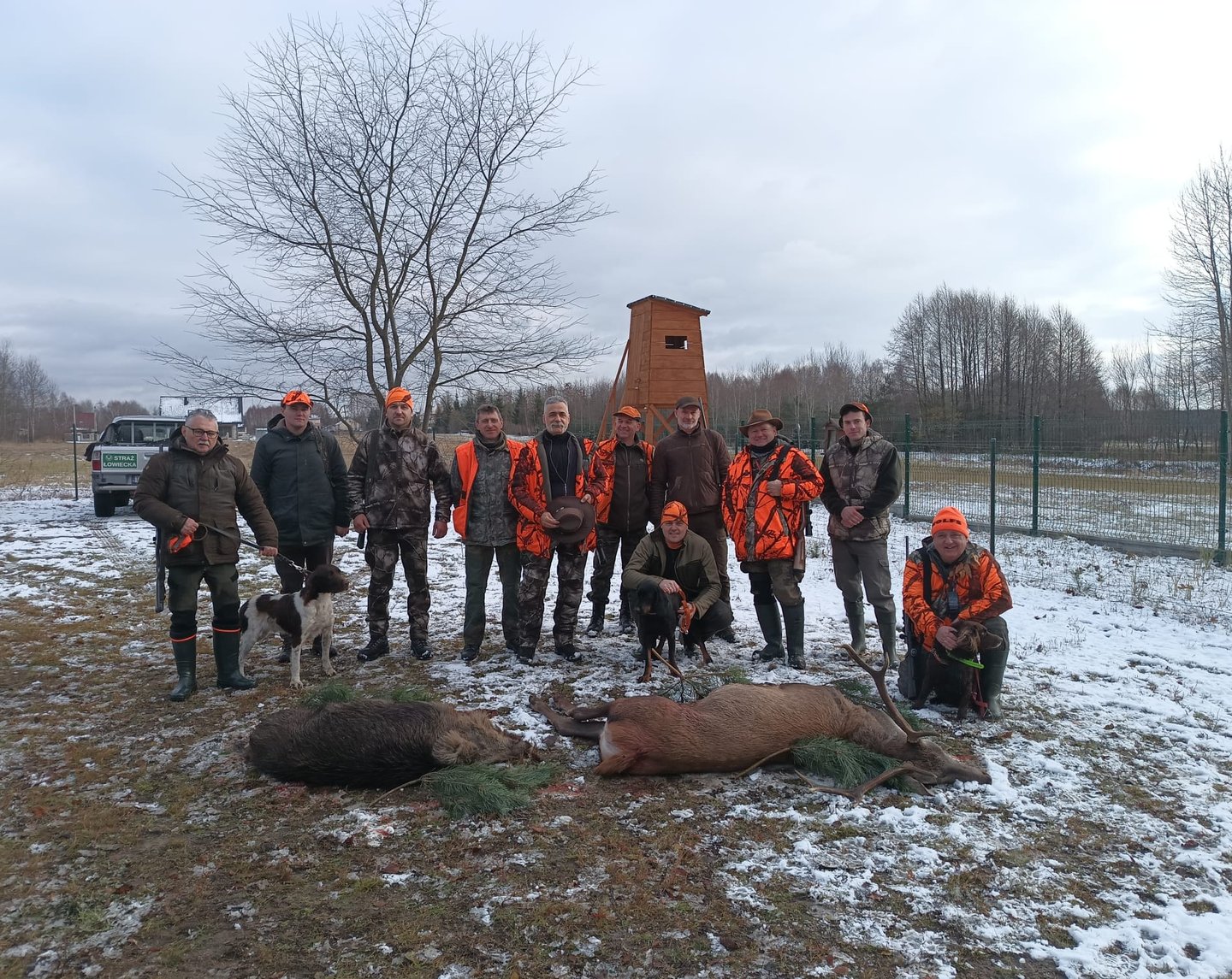 W polowaniu uczestniczyło 13 myśliwych, w tym 1 gość, oraz 3 psy w nagance. Zrealizowano 3 mioty na terenie leśnym między Krasną, Chybami i Kontrewersem, których efektem było pozyskanie jelenia byka przez kol. Marcina Włodarczyka oraz dzika wycinka przez kol. Marcina Piestrzyniewicza.