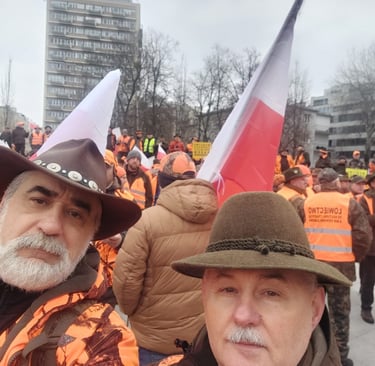 Chcielibyśmy podzielić się informacjami na temat udziału naszych kolegów w ostatnich protestach myśliwych, które odbyły się w Nowej Słupi oraz Warszawie. Nasze Koło Łowieckie miało zaszczyt być reprezentowane przez zaangażowanych myśliwych, którzy aktywnie włączyli się w działania na rzecz promowania postulatów ważnych dla całej społeczności łowieckiej. Nasza obecność na tych wydarzeniach podkreślała znaczenie dialogu i współpracy między myśliwymi a organami państwowymi w kształtowaniu przyszłości łowiectwa w Polsce. Działania te są wyrazem naszego zaangażowania w ochronę dziedzictwa łowieckiego oraz praw i tradycji myśliwskich. Chcielibyśmy wyrazić nasze uznanie dla kolegów: Pawła, Tadeusza, Tomasza, Szymona i Andrzeja za ich determinację i zaangażowanie. Ich postawa jest dla nas wszystkich inspiracją do dalszych działań na rzecz promowania i ochrony interesów społeczności łowieckiej. Zachęcamy wszystkich członków do aktywnego udziału w życiu społeczności myśliwskiej i wspierania naszych wspólnych celów.