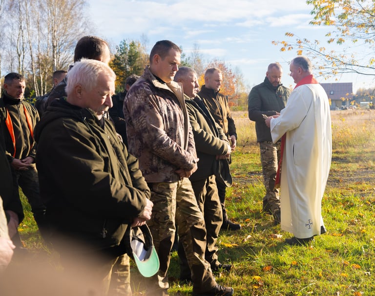W dniu 04.11.2023, mieliśmy zaszczyt uczestniczyć w corocznym polowaniu zbiorowym "Hubertus", które jest wyrazem głęboko zakorzenionej tradycji łowieckiej i szacunku dla przyrody. Uroczystość rozpoczęła się Mszą Świętą, odprawioną przez kol. ks. kan. Zbigniewa Krzyszkowskiego, który w modlitwach pamiętał również o myśliwych, którzy odeszli z naszego koła łowieckiego do Krainy Wiecznych Łowów.