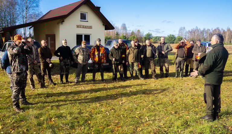 Chcielibyśmy wyrazić głęboką wdzięczność wszystkim obecnym myśliwym za ich uczestnictwo. Wasza obecność i zaangażowanie są dowodem na to, że tradycja polowania "Hubertus" jest przez nas wszystkich pielęgnowana z należytym szacunkiem i pasją. Dziękujemy za wspólnie spędzony czas i już teraz z niecierpliwością oczekujemy na kolejne polowanie zbiorowe.