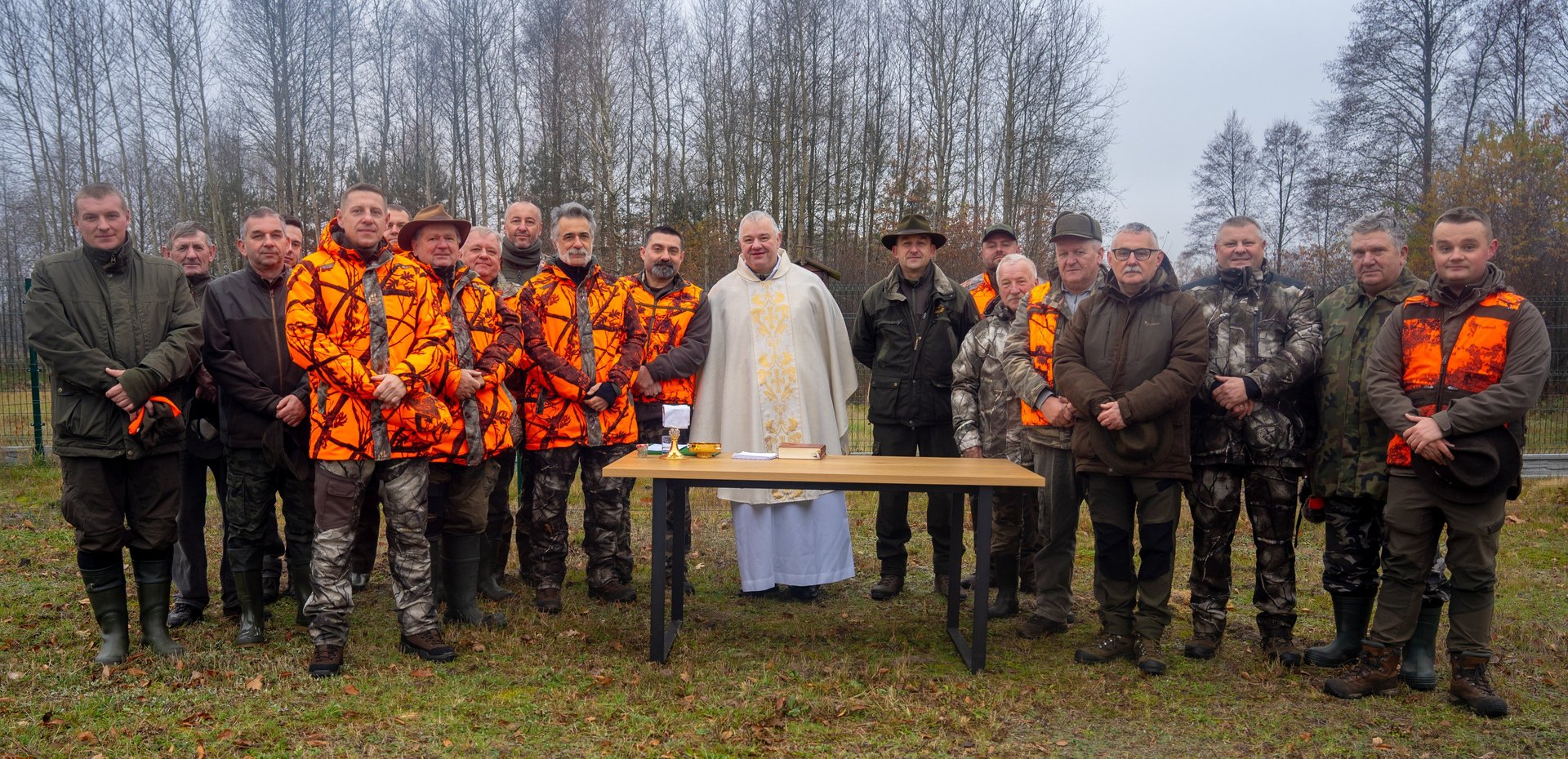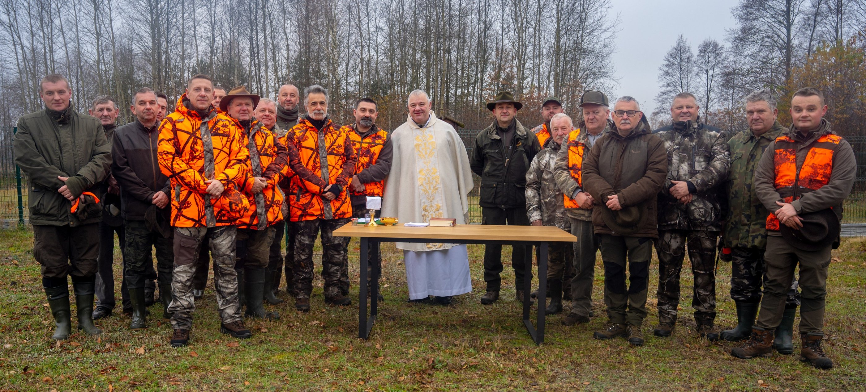 Po Mszy kol. Prezes Szymon Olesiński przekazał kluczowe informacje dotyczące zasad bezpieczeństwa oraz przypomniał miejsca pędzeń i gatunki zwierząt objęte planem łowieckim, aby polowanie przebiegało zgodnie z przepisami i z poszanowaniem przyrody. W organizacji pomagał kol. Czesław Kowalski, którego zaangażowanie i wsparcie były nieocenione dla sprawnego przebiegu wydarzenia.
