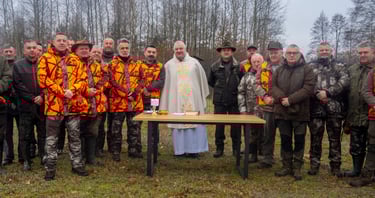 W dniu 09.11.2024 mieliśmy zaszczyt uczestniczyć w corocznym polowaniu zbiorowym "Hubertus", które jest symbolem głębokich tradycji łowieckich i szacunku dla natury. Uroczystość rozpoczęła się od Mszy Świętej, odprawionej przez ks. Janusza Marca, który w modlitwach pamiętał o myśliwych, którzy odeszli z naszego grona do Krainy Wiecznych Łowów.