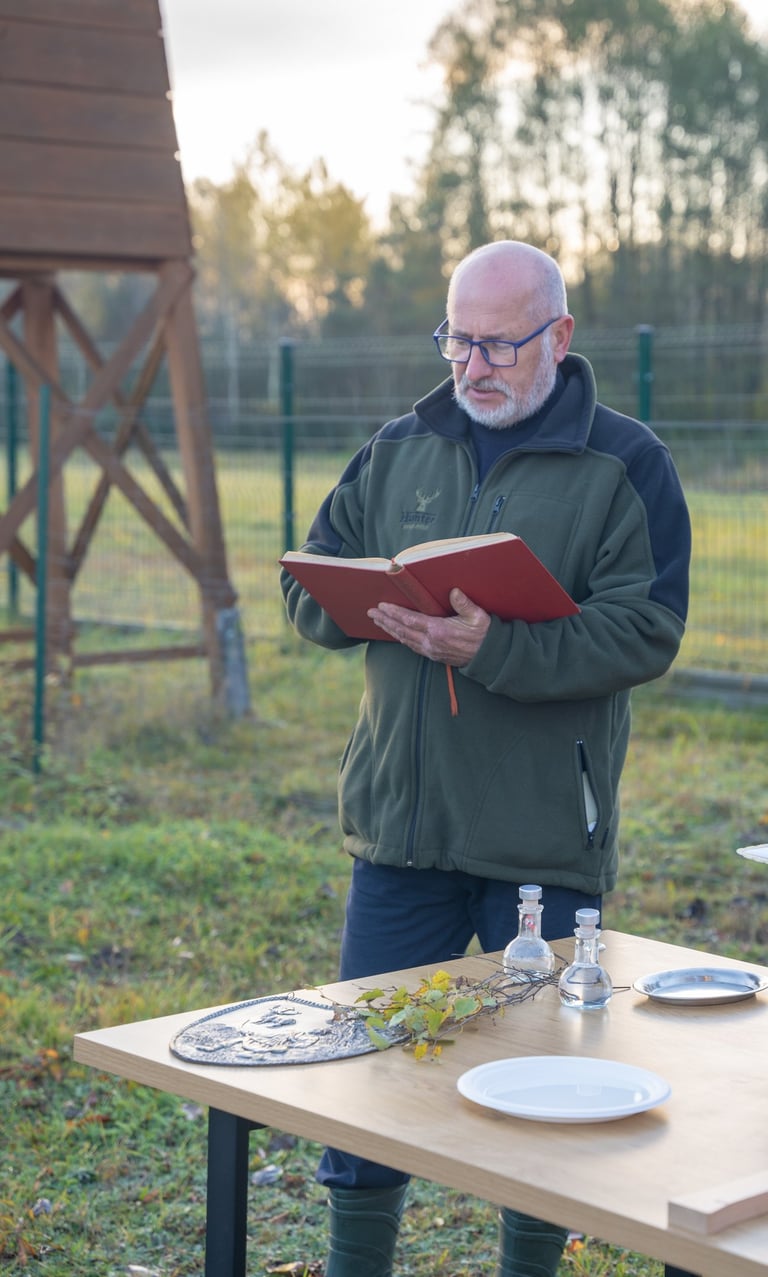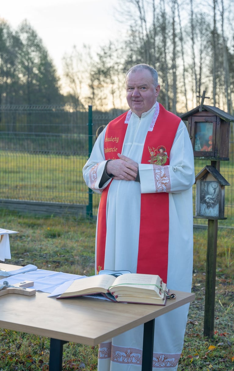 Podczas Mszy Świętej ksiądz Zbigniew Krzyszkowski dokonał również poświęcenia naszej osady myśliwskiej, a także przekazał Kołu wyjątkowy dar – krzyż oraz ryngraf z wizerunkiem św. Huberta, będący symbolem opieki patrona myśliwych nad naszym środowiskiem. Dar ten stanowi piękne i trwałe świadectwo więzi duchowej oraz szacunku wobec tradycji łowieckiej.